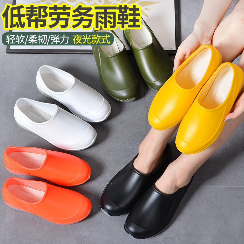 レディース防水靴、滑り止めレインブーツ、夜光作業用ゴム靴、白、キッチン用防水、浅履きローカットレインブーツ、レディースカジュアル、多用途