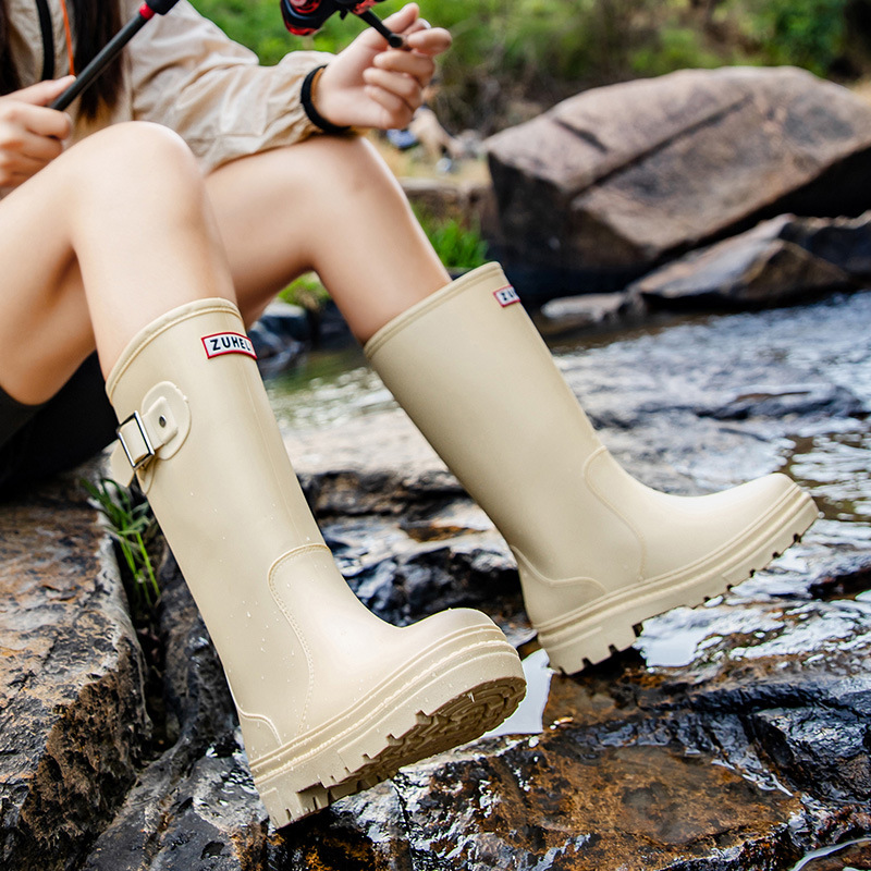 水靴メーカー卸売りゴム靴滑り止め中筒格子女性ファッション雨靴保温耐摩耗レジャー成人雨靴