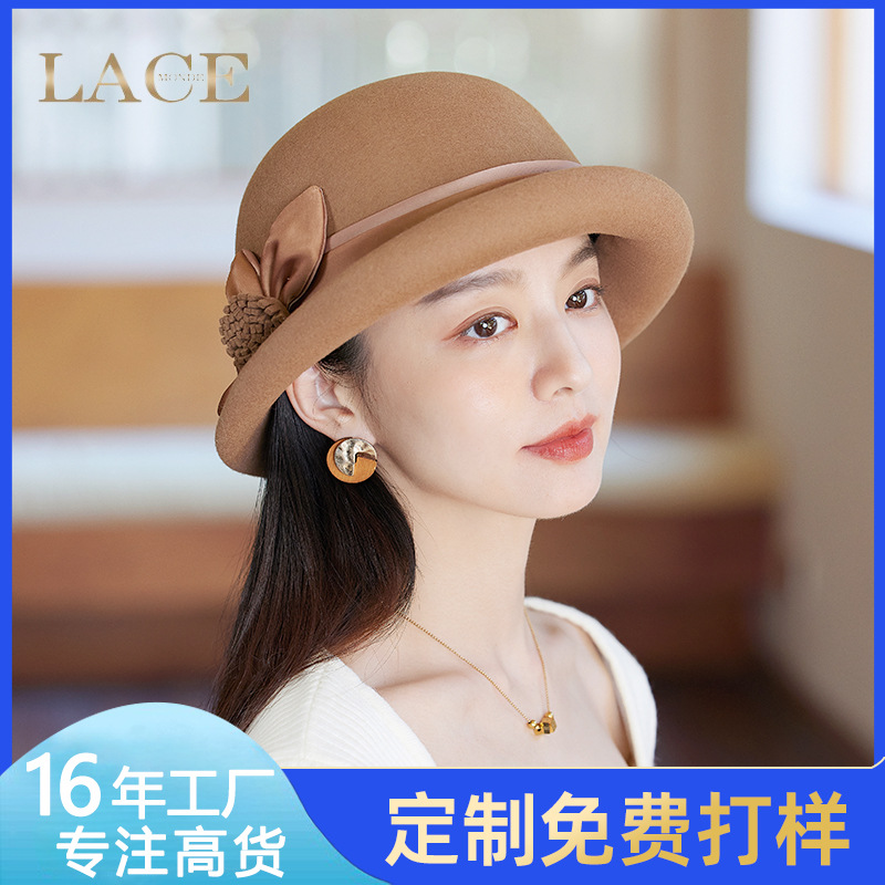 オーストラリアウールファッション帽子女性の秋と冬のフェルト帽子メッシュディナー帽子弓ベレー帽カスタムメイド