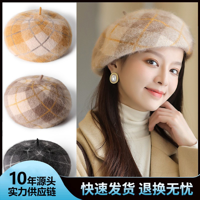 ベレー帽女性秋冬帽子アウトドアカボチャ帽子潮耳保護帽子カジュアルウサギ毛ウール帽子卸売り