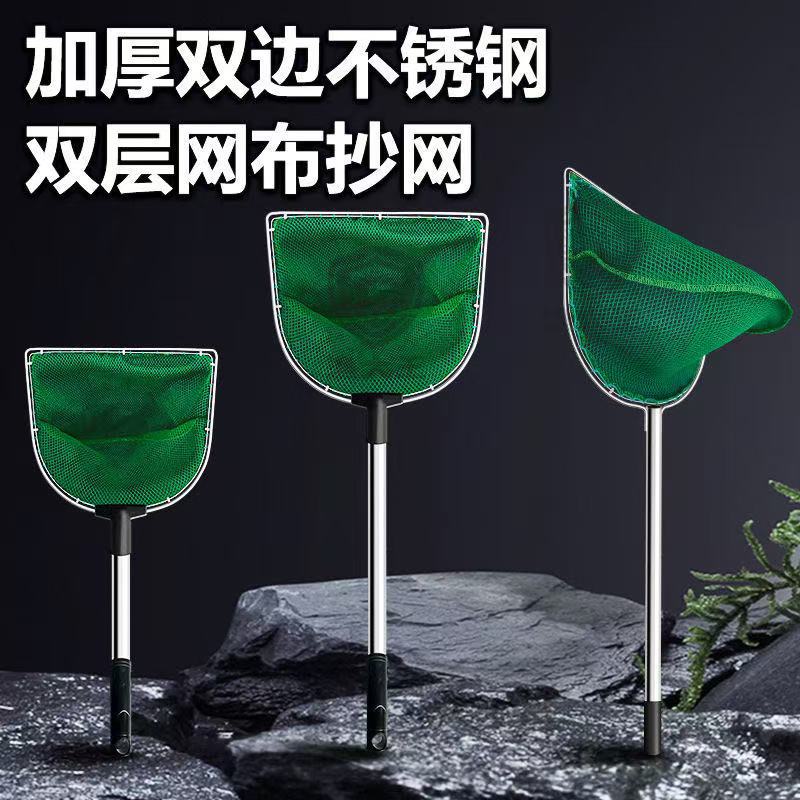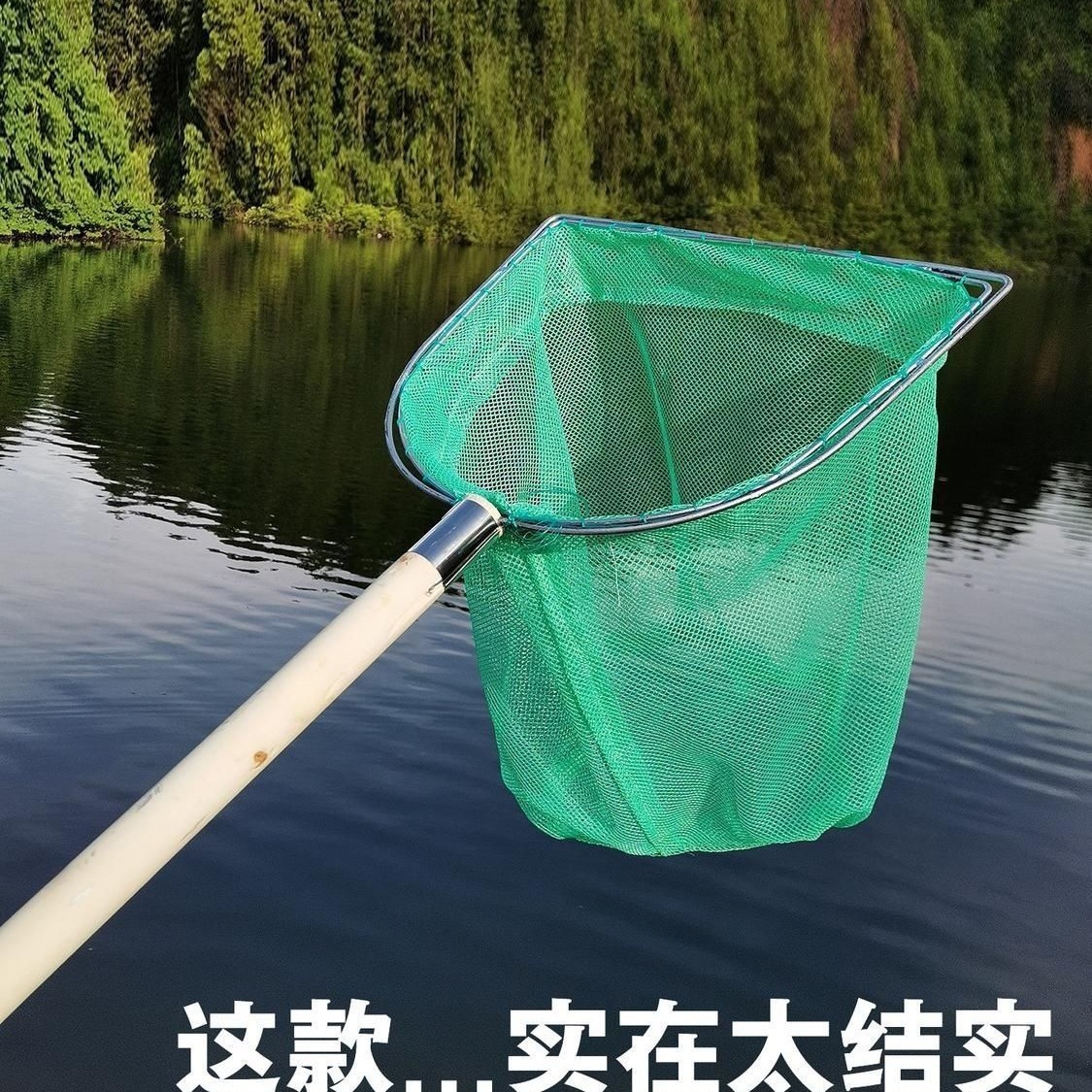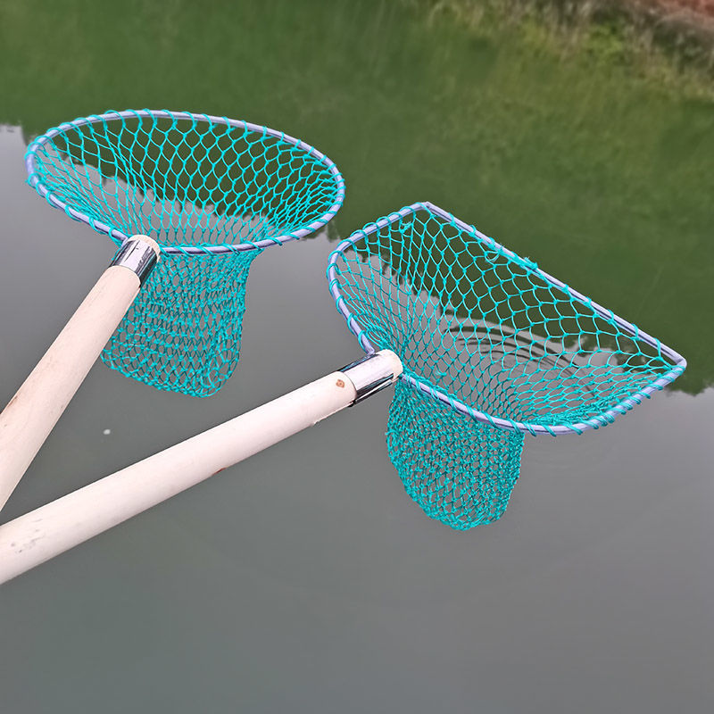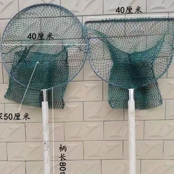 鱼网抄网木柄铁网圈实用无害方圆形木把单框抄网套装鱼塘捕捞渔具