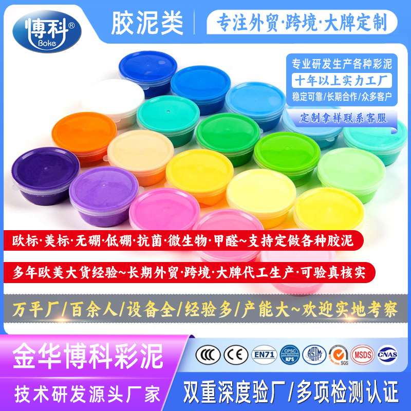 【关于公司】:金华博科彩泥技术研发有限公司是全球客户采购彩泥类及胶泥类DIY玩具的优质供应商。过去的数年里,我们在各个方面追求不断进步,开发符合顾客喜爱的富有创意的产品,并在市场上获得技术及品质上认可。金华博科彩泥始终以专业的服务,敏锐的创新及科学的管理致力于为全球用户提供质量稳定,供货可靠的彩泥产品及服务。公司产品深受欧美等客户的广泛赞誉。金华博科彩泥秉持“专注,专业,专心”的企业理念,致力于彩泥及胶泥类DIY玩具产业的发展,希望满足全球彩泥及胶泥类DIY玩具客户的采购需求。实力和产品的质量获得业界的认可,欢迎参观,指导和业务洽谈。