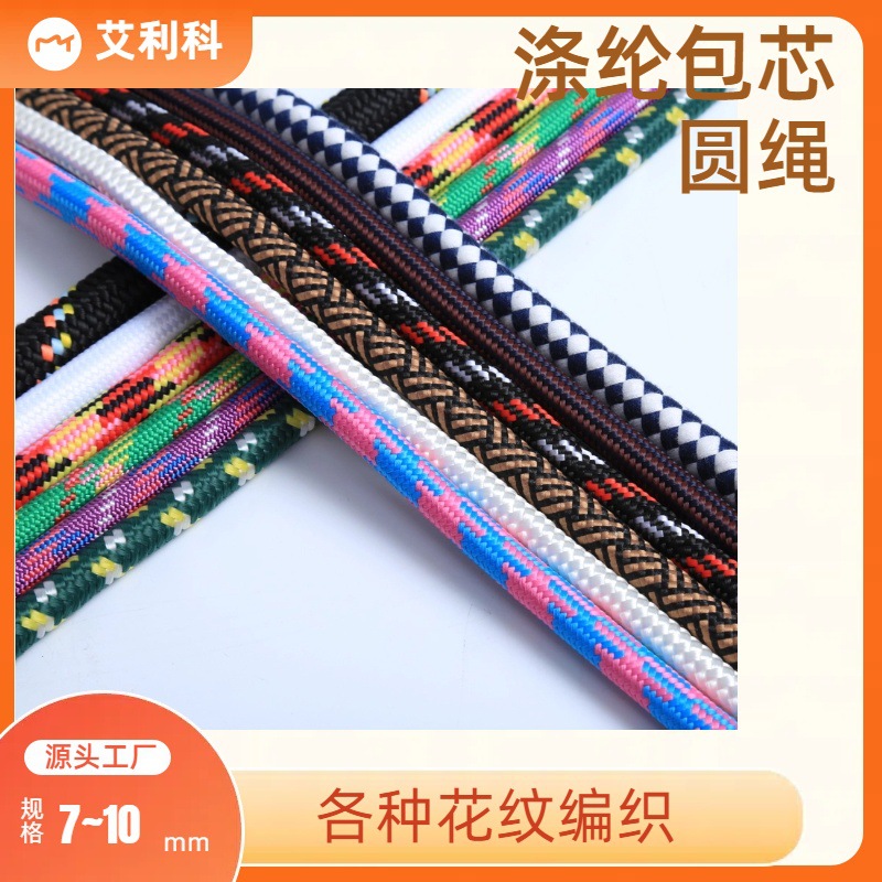 工場スポット卸売り8mmカラーポリエステル包芯ロープ編み中実丸ロープ携帯電話掛けロープペット牽引ロープ