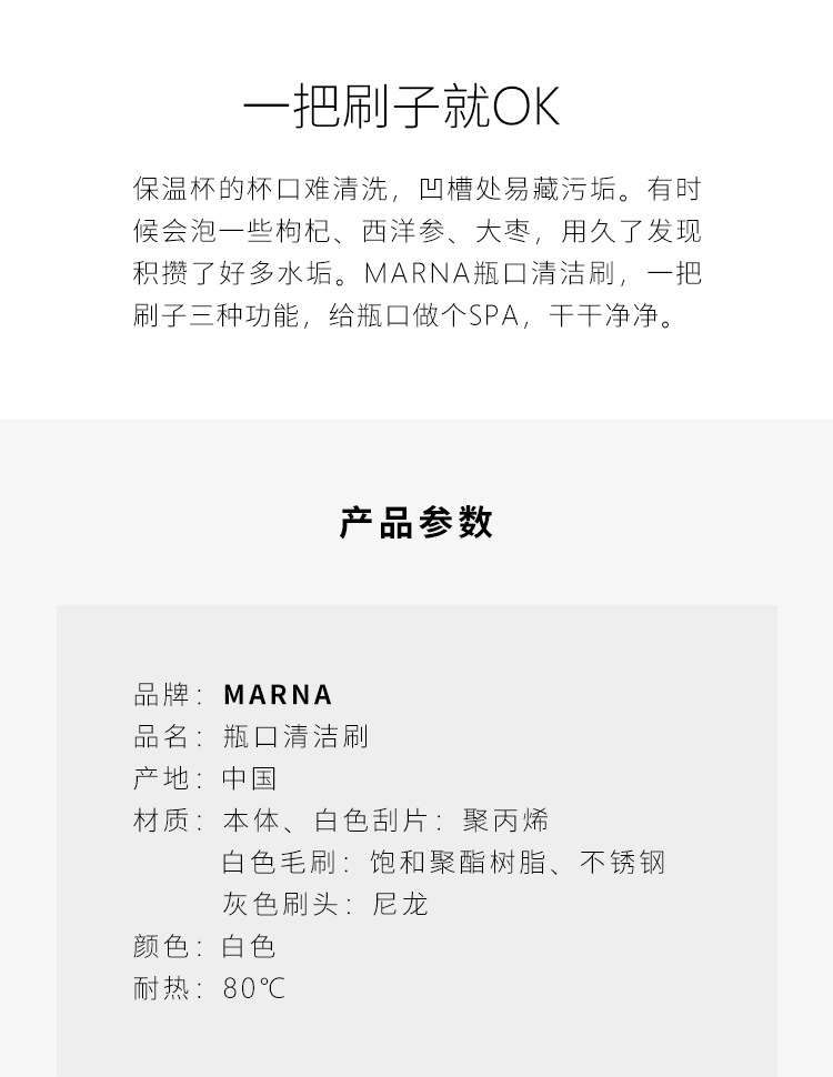 Marna日本多機能保温カップ瓶口洗浄ブラシカップ蓋溝汚れ隙間洗浄カップブラシ
