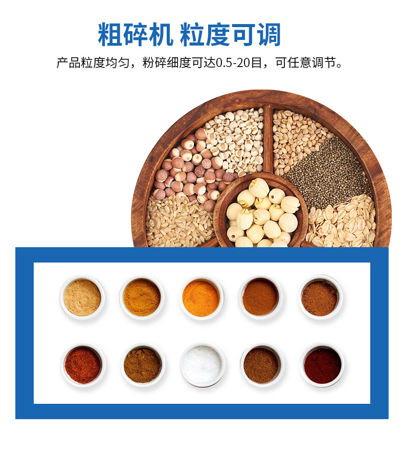 该机具有结构简单、小而合理、操作方便、耗电省、粉碎效果好、颗粒均匀等优点,是粗碎加工理想之好设备,为超细粉碎加工做好前道准备。