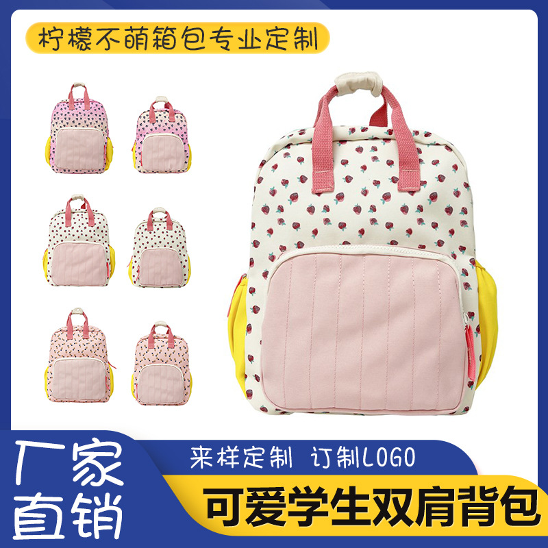 メーカーの現物卸売り訓練かばん帆布白蓋色合わせ学生かばん児童のランドセルはロゴを印刷している
