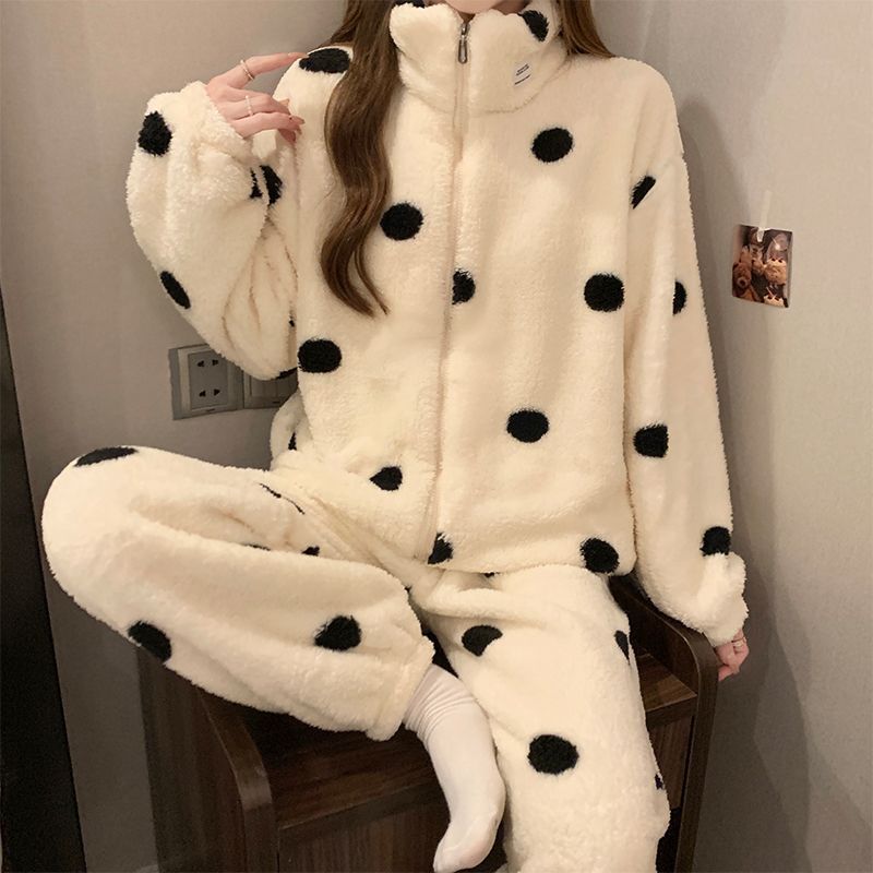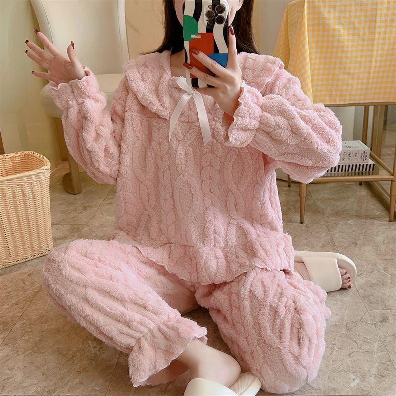 睡衣女秋冬季加厚保暖绒料公主风可爱宽松纯色家居服套装量大优惠