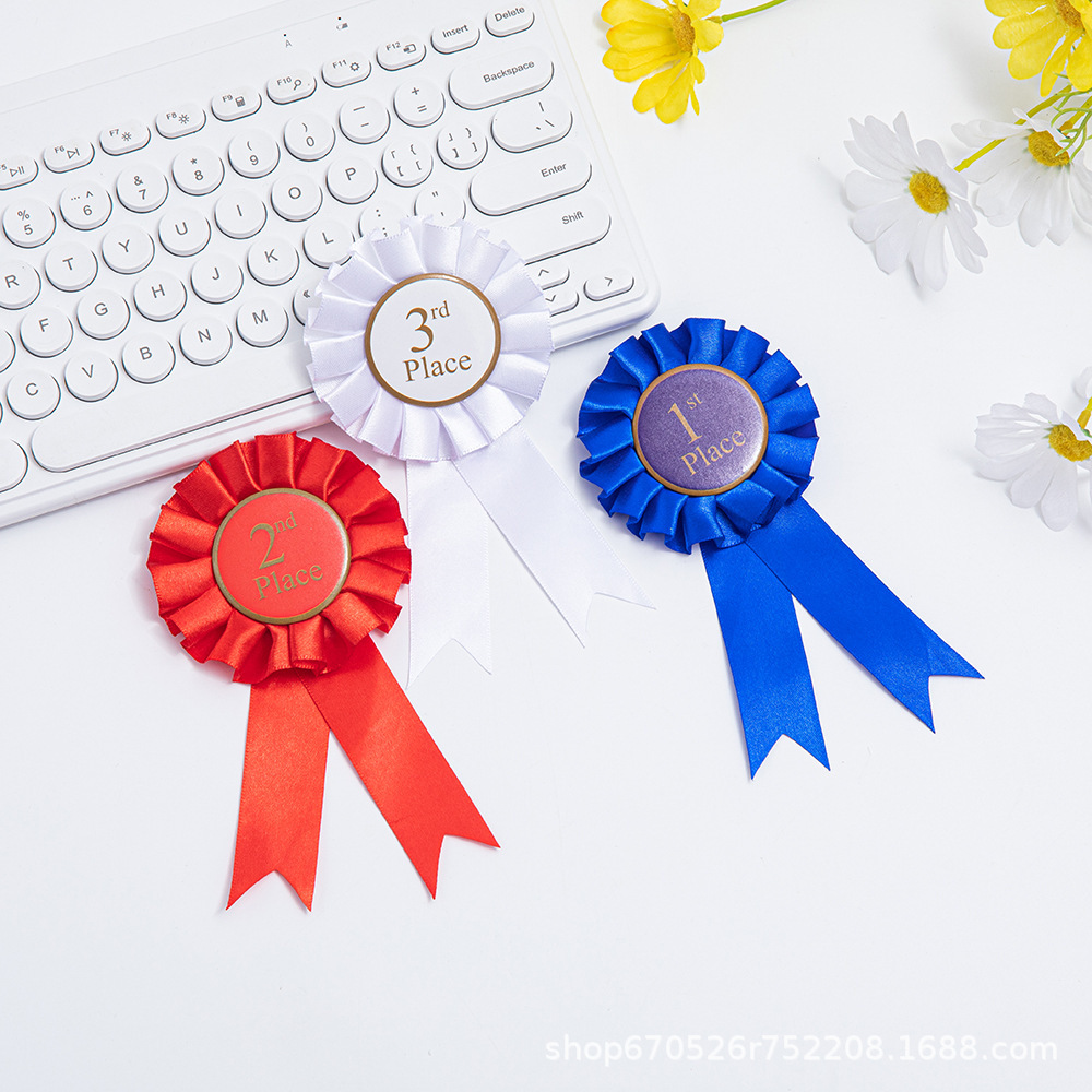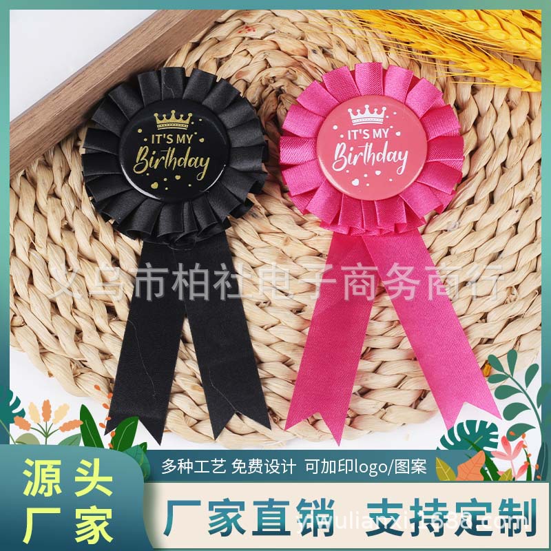 跨境专供彩色丝带胸花徽章儿童生日派对节日用品马口铁胸章定制