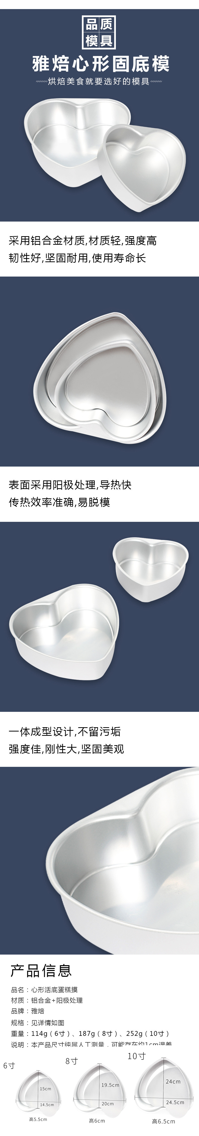 雅焙煎ツール6/8/10インチハート型アルミニウム合金陽極活底シフォンケーキ金型オーブン金型