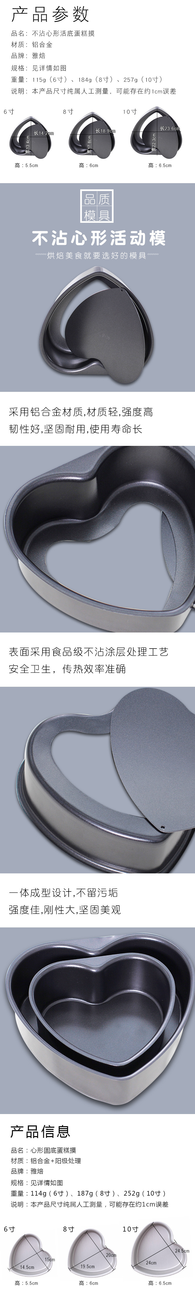 雅焙煎不粘着活底ハート型6/8/10インチ活底、アルミニウム合金陽極固底、活底金型