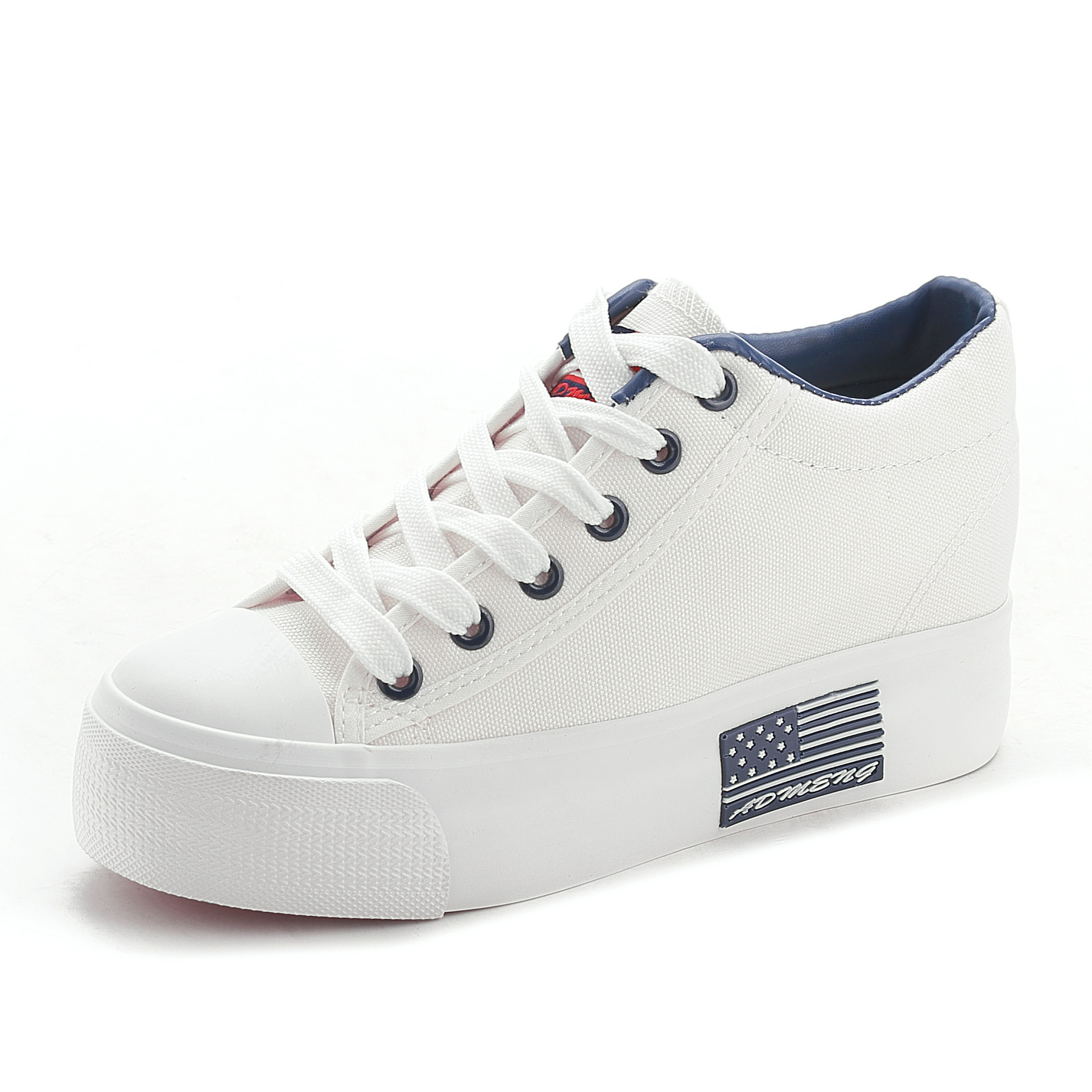 春秋季新款低帮帆布鞋女鞋韩版学生厚底松糕内增高百搭小白鞋6029