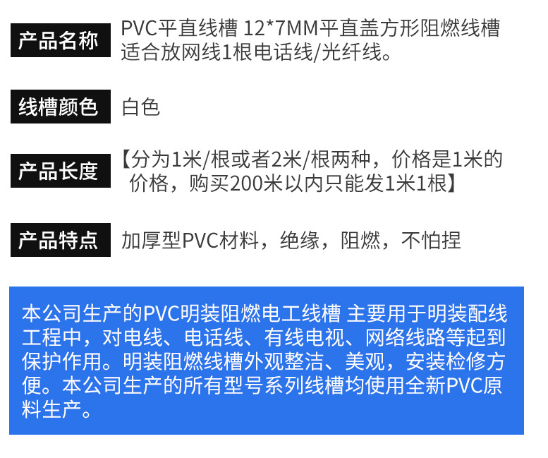 12*7極小pvcプラスチックステルスネットワーク線溝外蓋式難燃布線溝線線ケーブル光ファイバ線溝