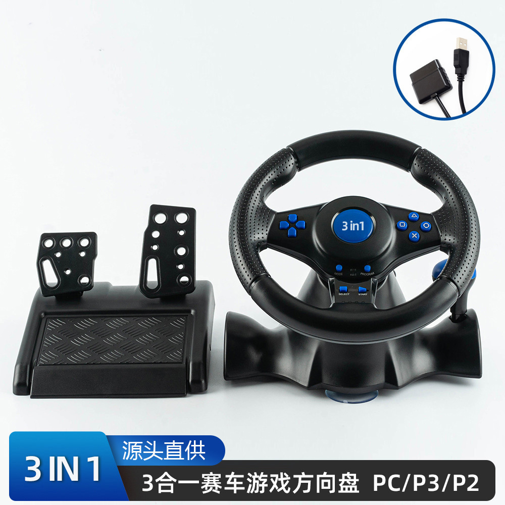 3合一赛车方向盘,可兼容PS2 / PS3/PC端使用