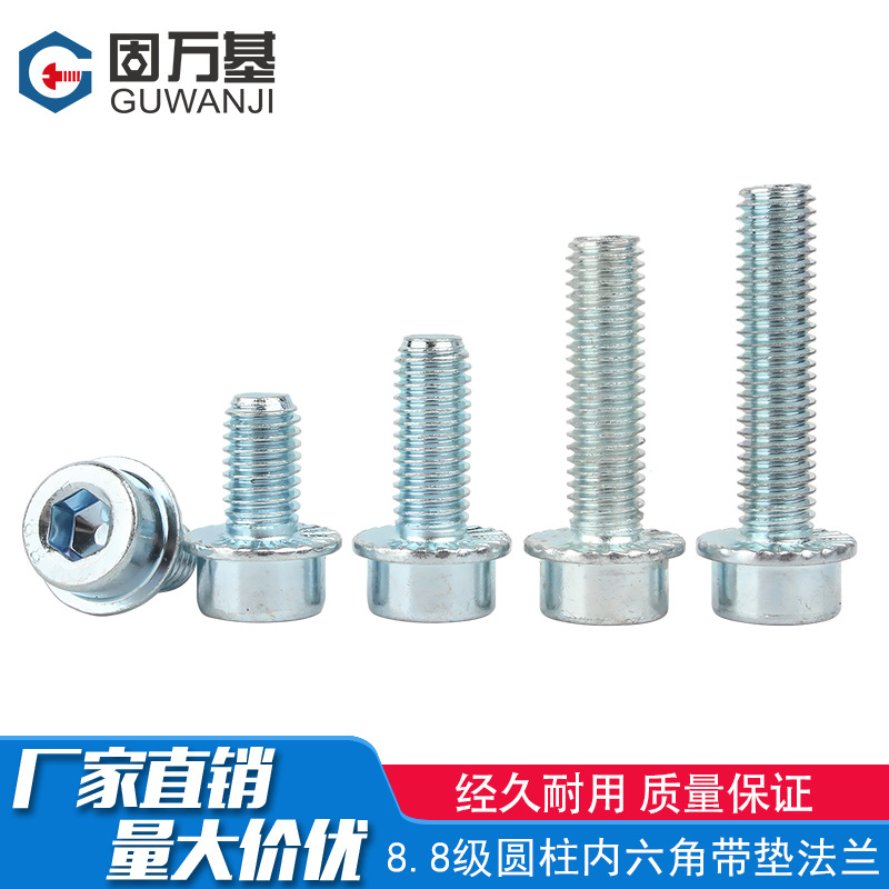 8.8級亜鉛メッキフランジ面六角穴付きネジ、ボルト付き304ステンレス鋼円筒頭カップヘッドパッド付きネジ