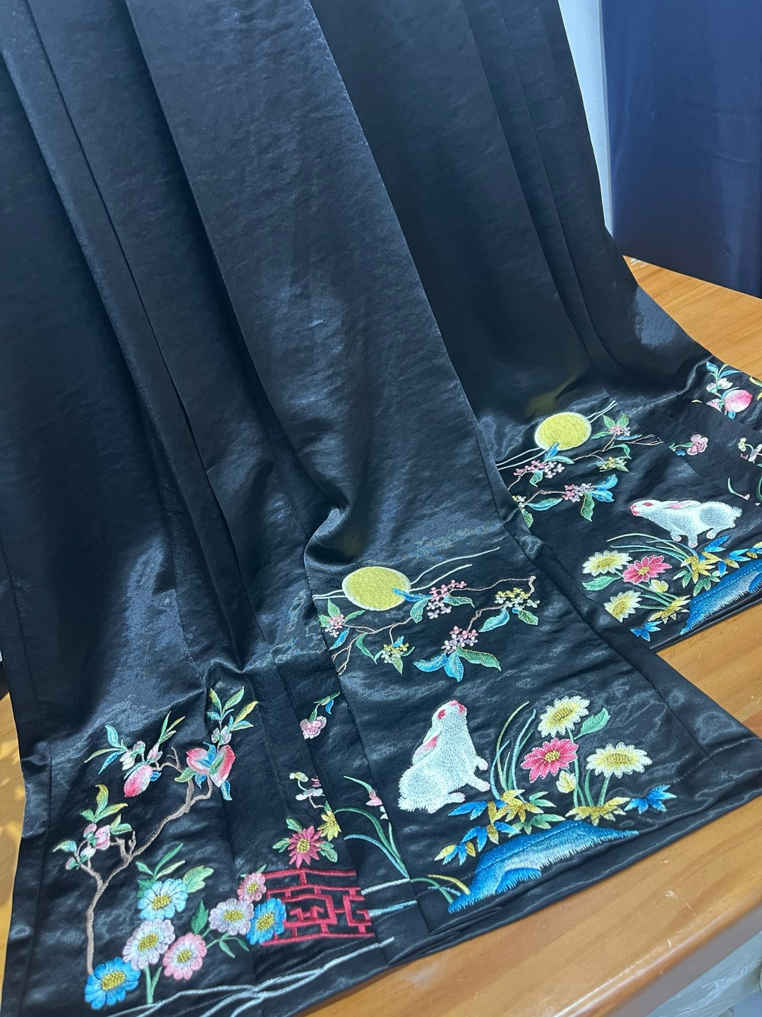 9531新中式重磅醋酸清汉玉兔望月刺绣百搭裙裤