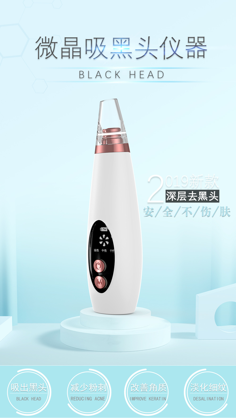 毛孔清洁器充电显示屏款吸黑头仪器祛粉刺黑头导出洁面仪家用脸部