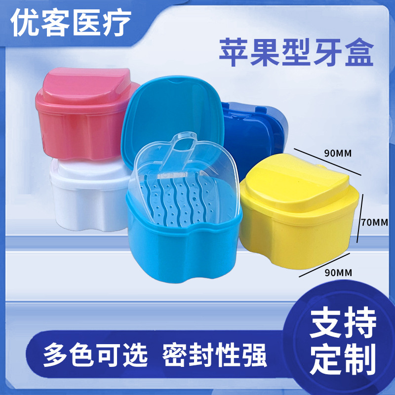 产品名称: 苹果型带网假牙盒(可定制logo) 产品尺寸:93*94*66mm