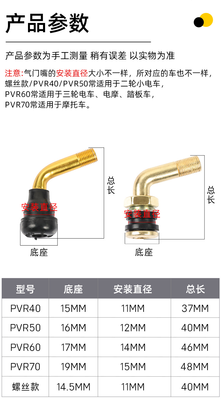 PVR70/60/50/40防漏気曲げ口オートバイタイヤエア口電気自動車真空タイヤバルブ口アルミロッド