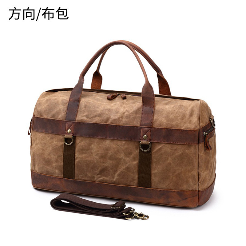 古典的なワックスキャンバス旅行バッグ欧米の純色屋外シングルバッグ収納バッグ耐摩耗性と狂馬皮