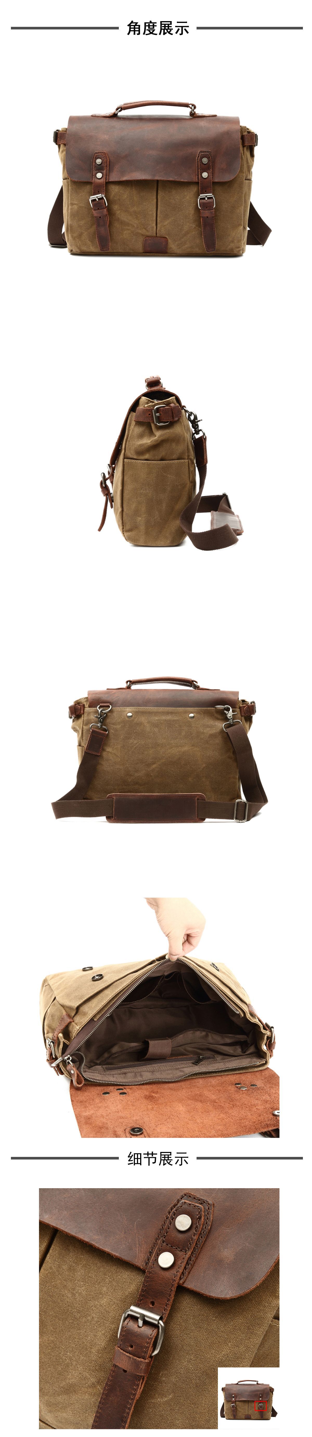 クロスボーダーレトロキャンバスバッグキャンバストップレイヤーレザーメンズショルダーバッグクロスボディバッグポータブルブリーフケースメンズ工場直販