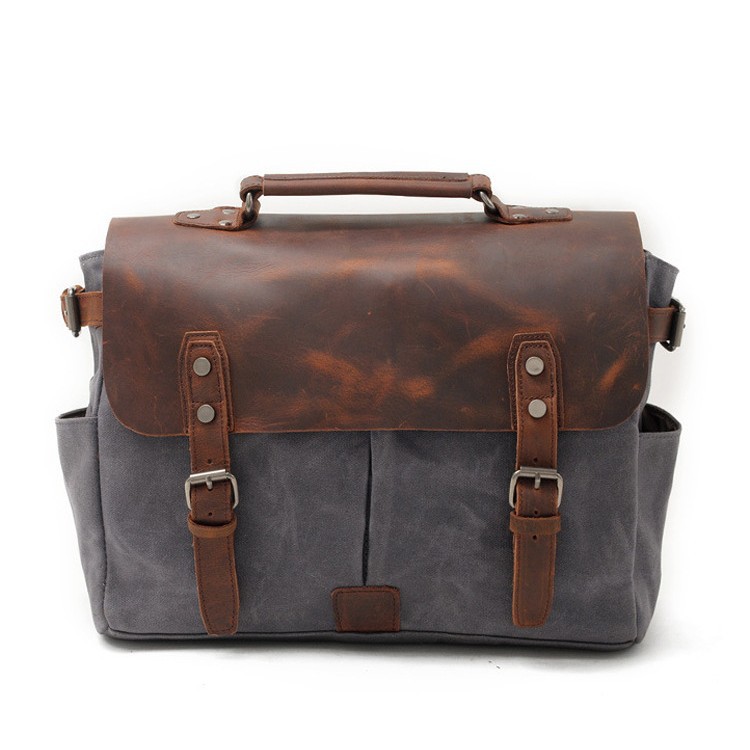 レトロなオイルワックスのキャンバスに狂馬皮の公文書のハンドバッグを配合します。