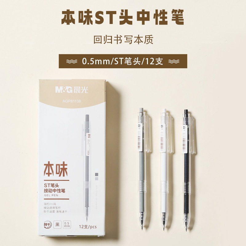 晨光按动中性笔本味系列ST头速干黑水笔学生用签字笔81108刷题笔