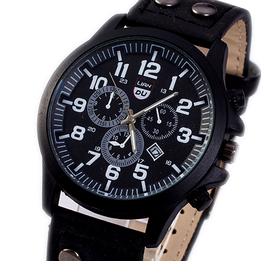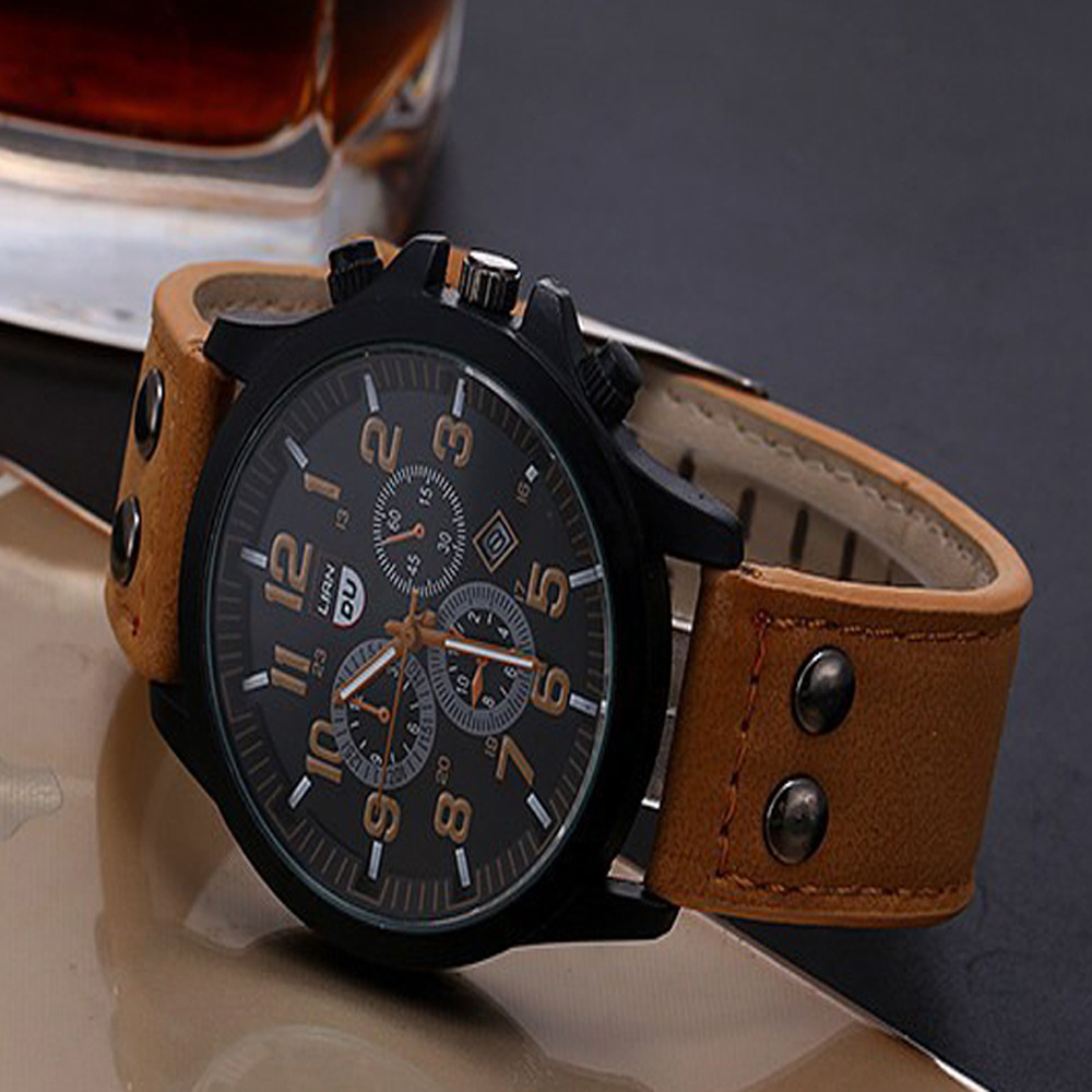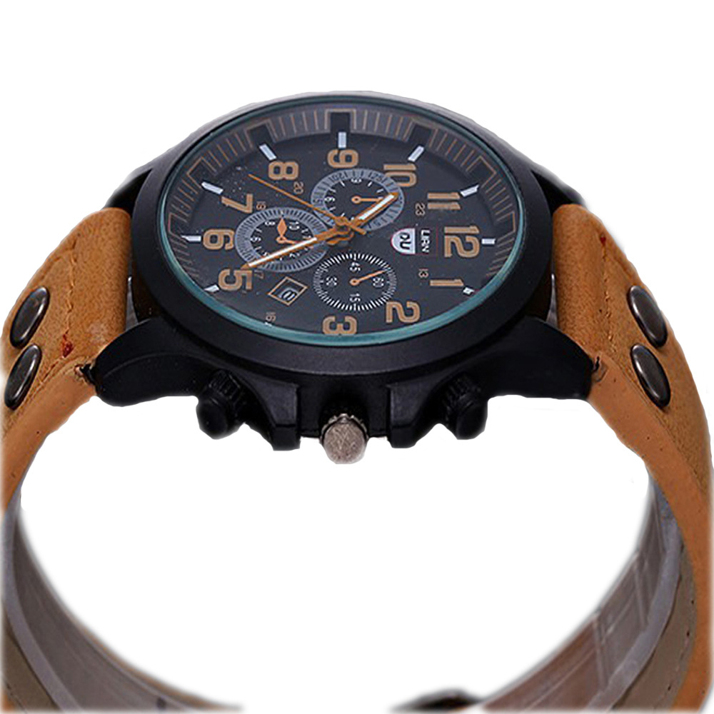 古典的な男性運動石英時計カウボーイ風装飾三眼帯カレンダー男性時計スポット卸売り
