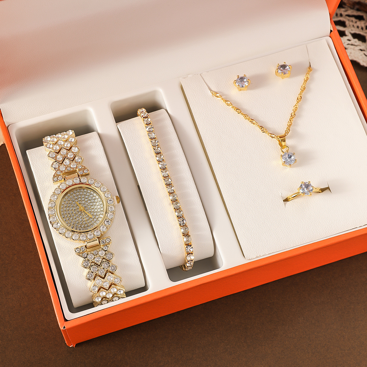 腕時計セットファッション腕時計ギフトセットクォーツ腕時計ネックレスブレスレット指輪ピアス-ボックスなし