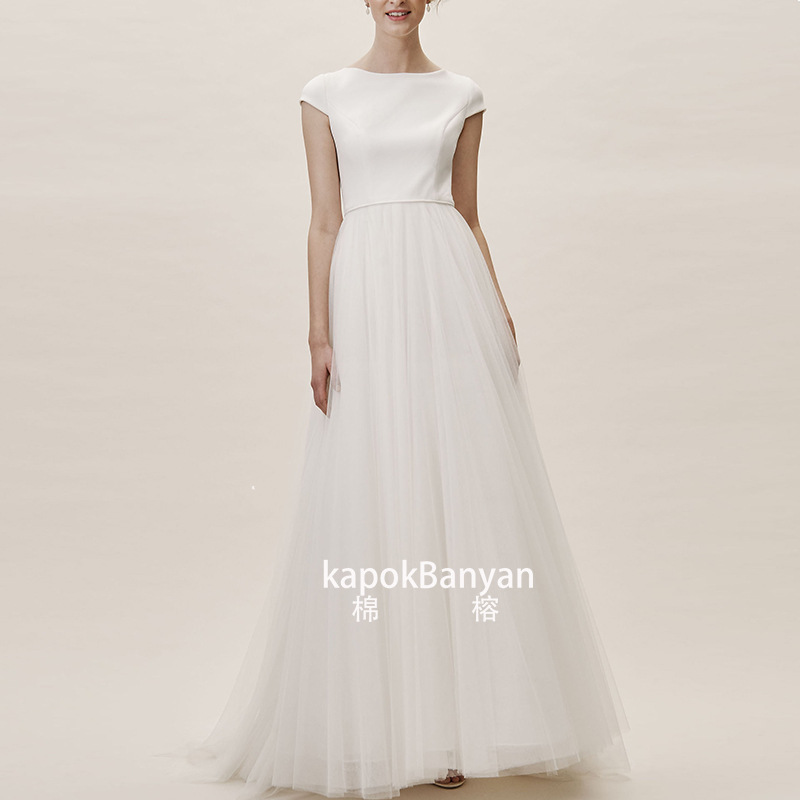 軽いウェディングドレス2026新作ブライダルパフスリーブホワイトシンプルエレガントスクエアネック登録式ドレスワンピース卸売