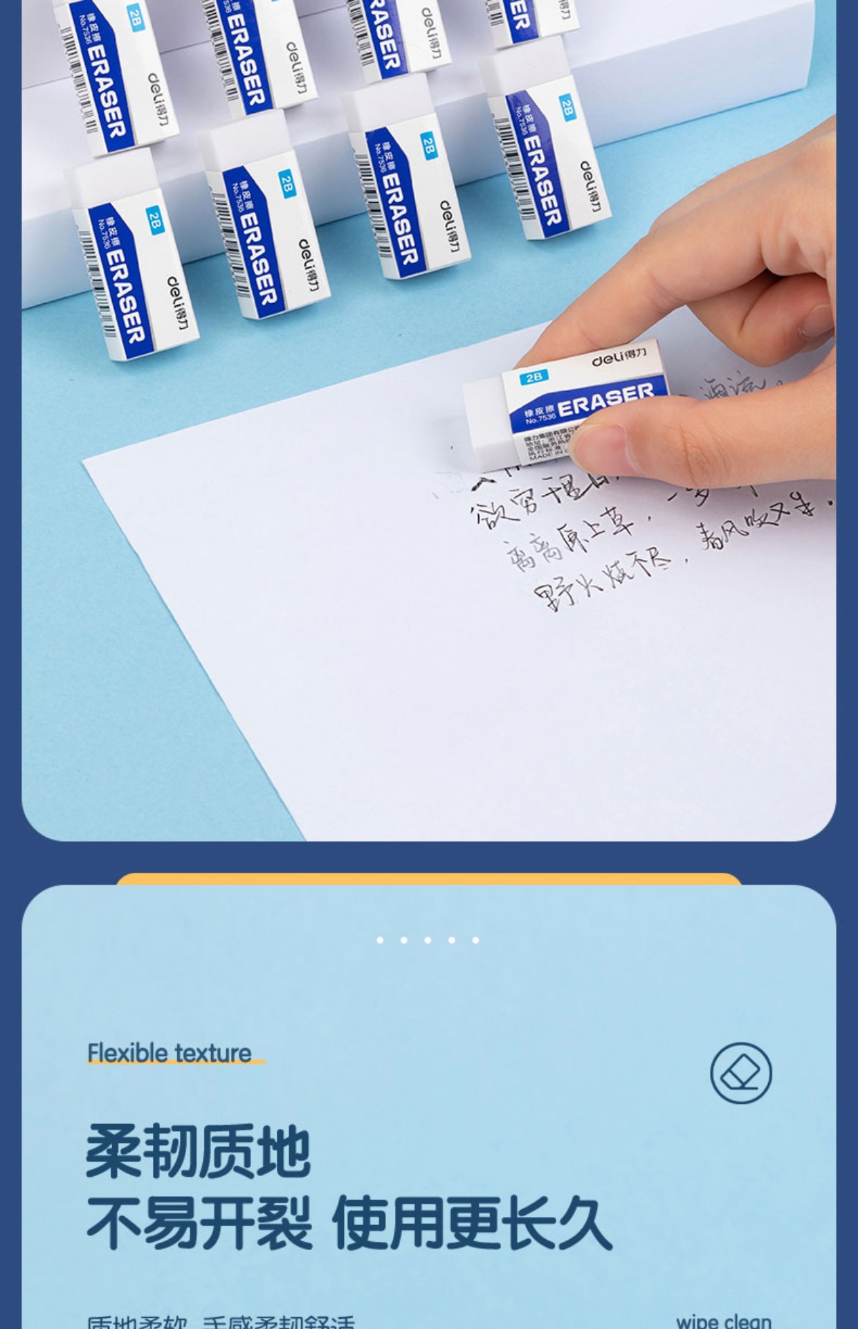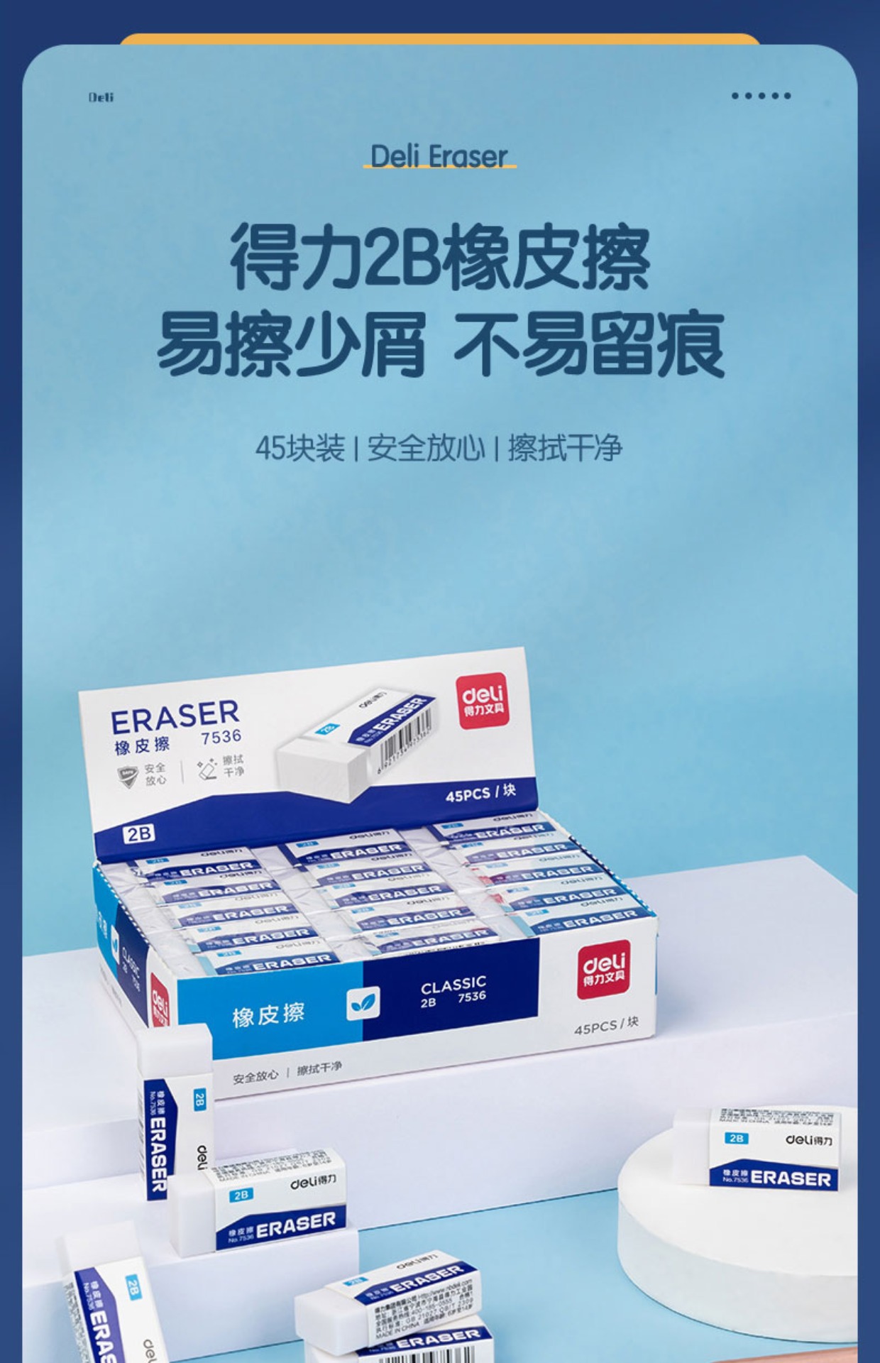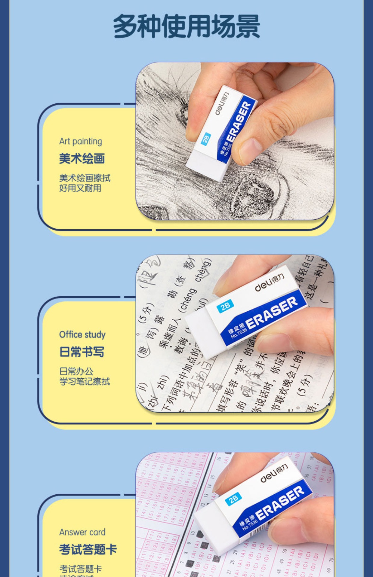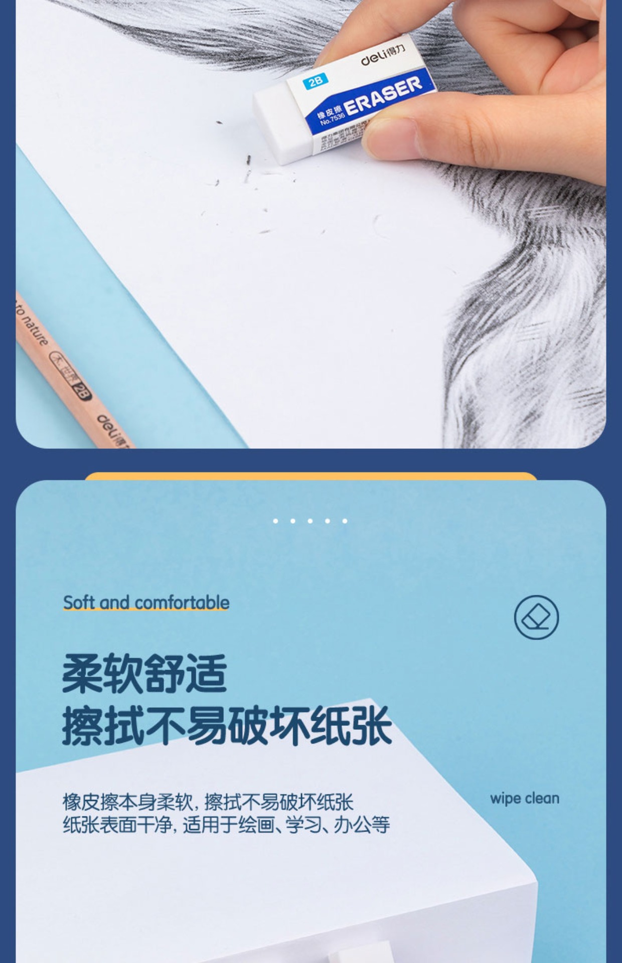 得力7534消しゴム小学生鉛筆消しゴム試験スケッチ美術消しゴムきれいな4bトランペット