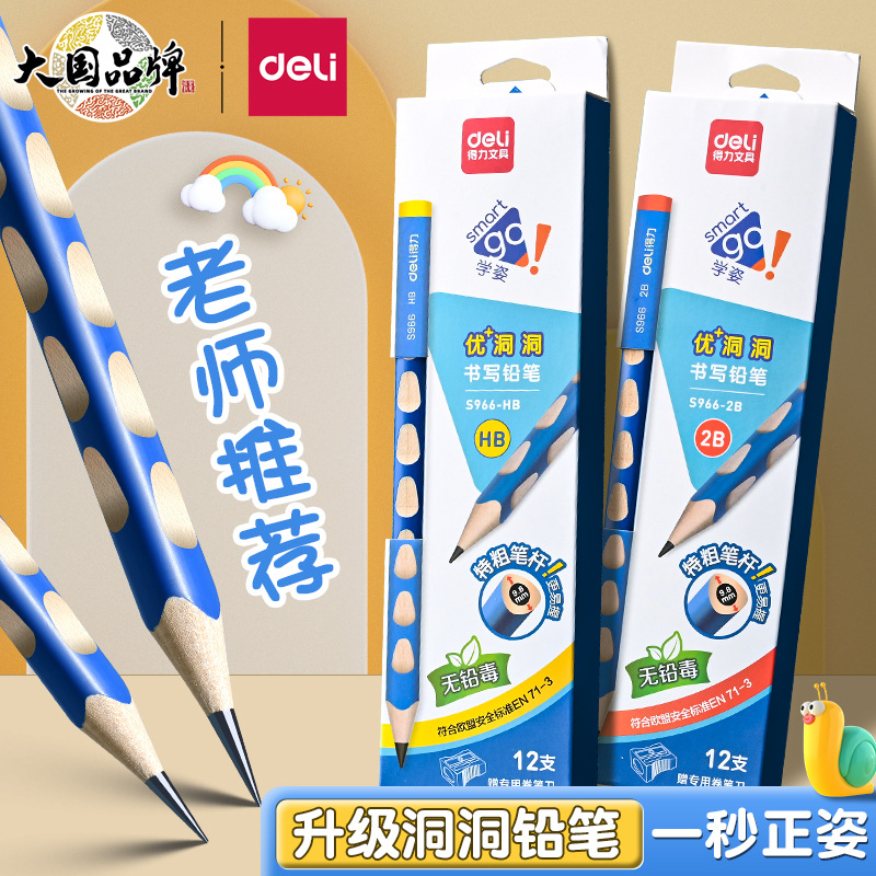 デリ穴ペン鉛筆小学生三角棒鉛筆hbボックス子供用ポジティブ穴ペンスケッチ2b鉛筆