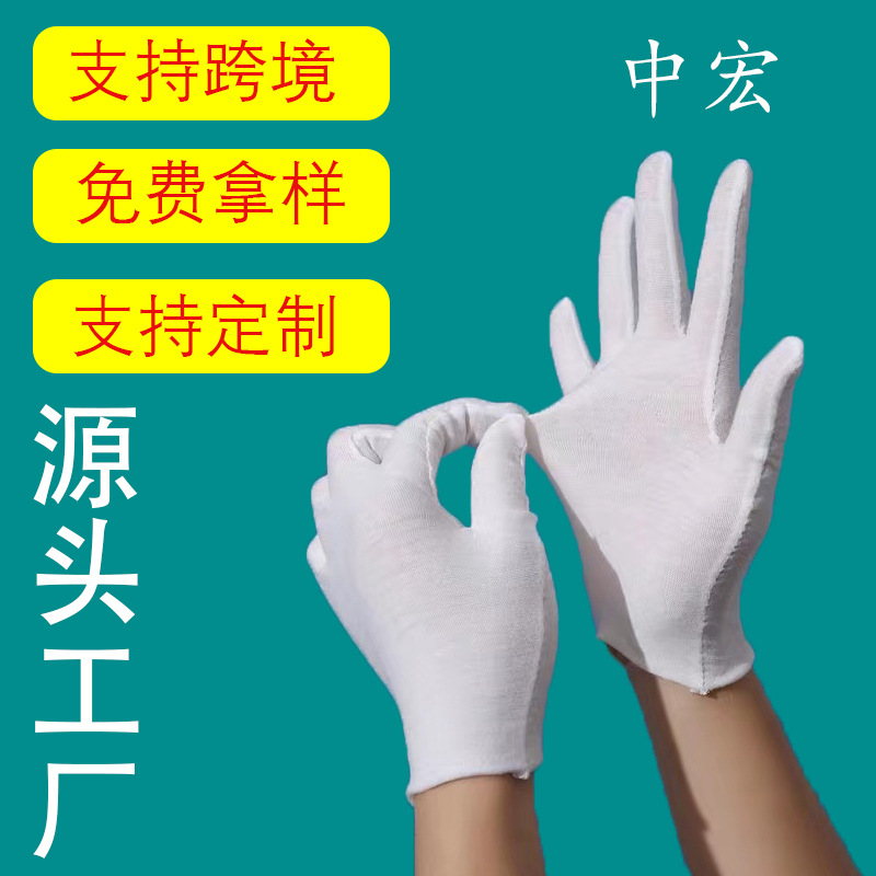 白い手袋、エチケット、労働保護、純綿作業用手袋、産業作業保護、厚く耐摩耗性、外国貿易卸売