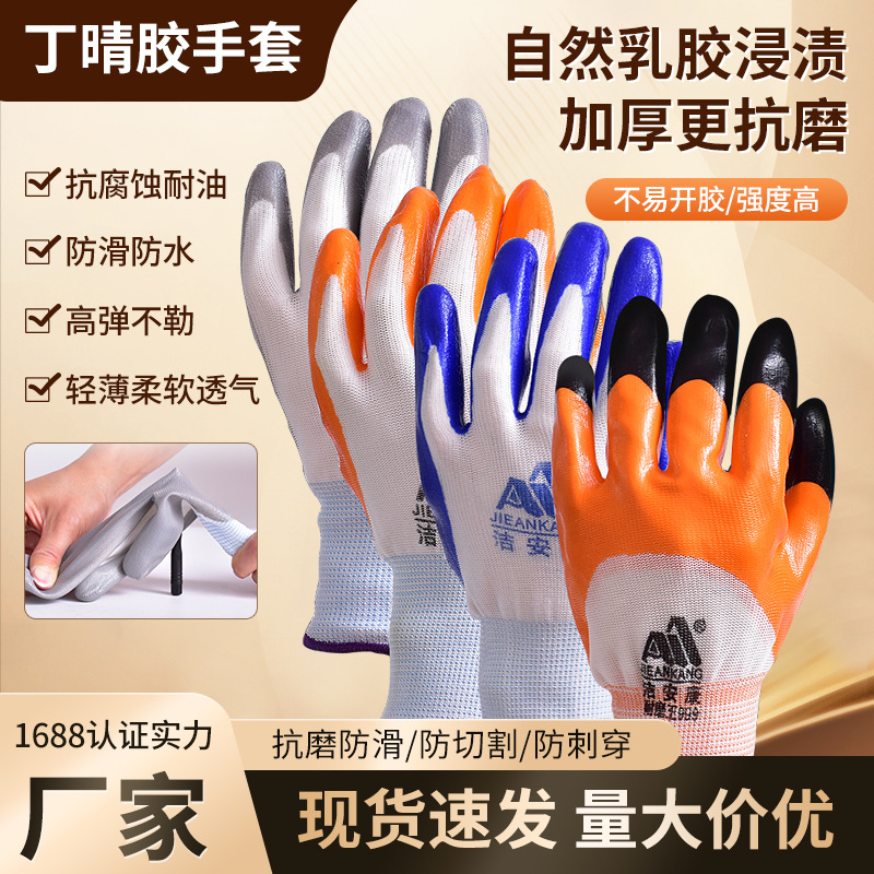 丁晴手袋丁青コーティング耐摩耗ナイロン十三針ゴム工事現場の仕事用労働防護ゴム手袋