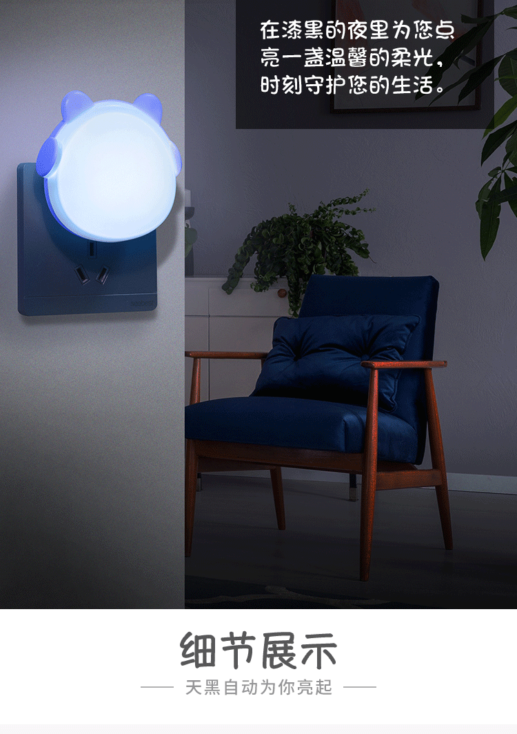 柯麗雅私模創意プラグスイッチ二段調光暖光led省エネ小夜灯廊下寝室知能