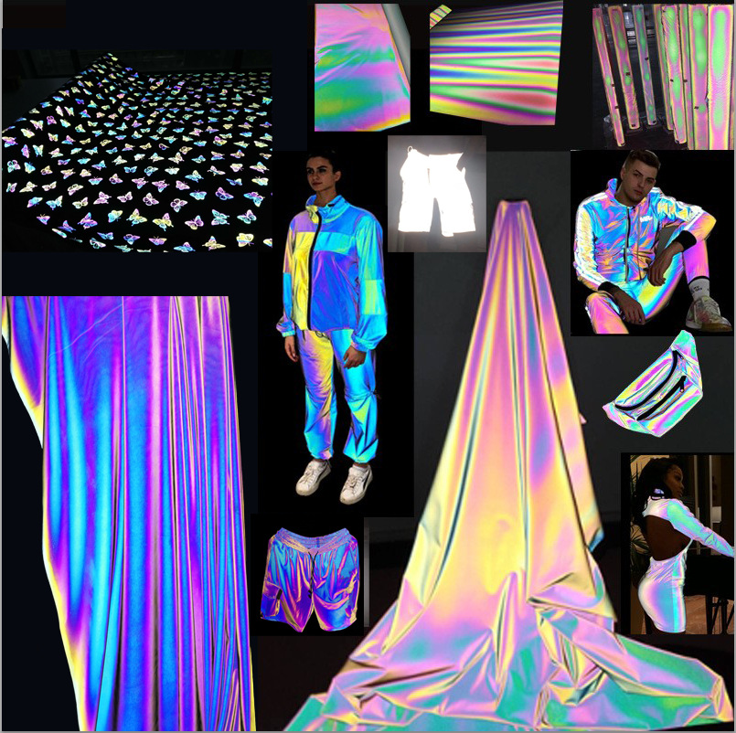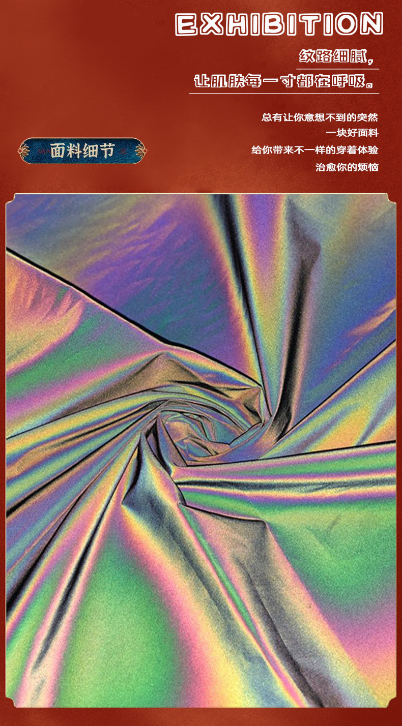 幻彩レーザー反射布夜光七色反射布地科学技術反射布カラフルダウンジャケット生地