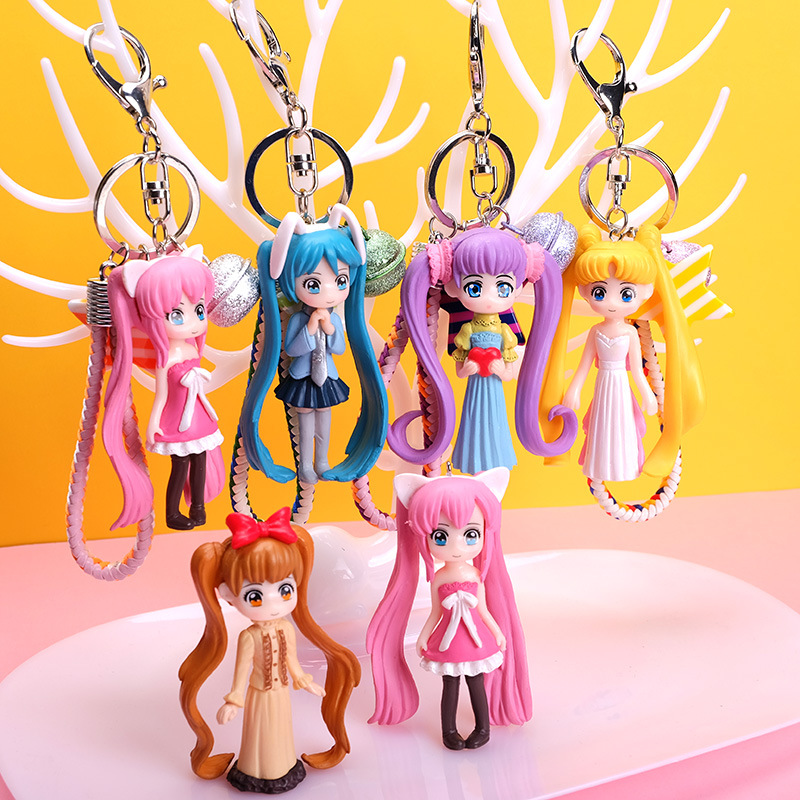 かわいい美少女人形車のキーホルダーアメのストラップ