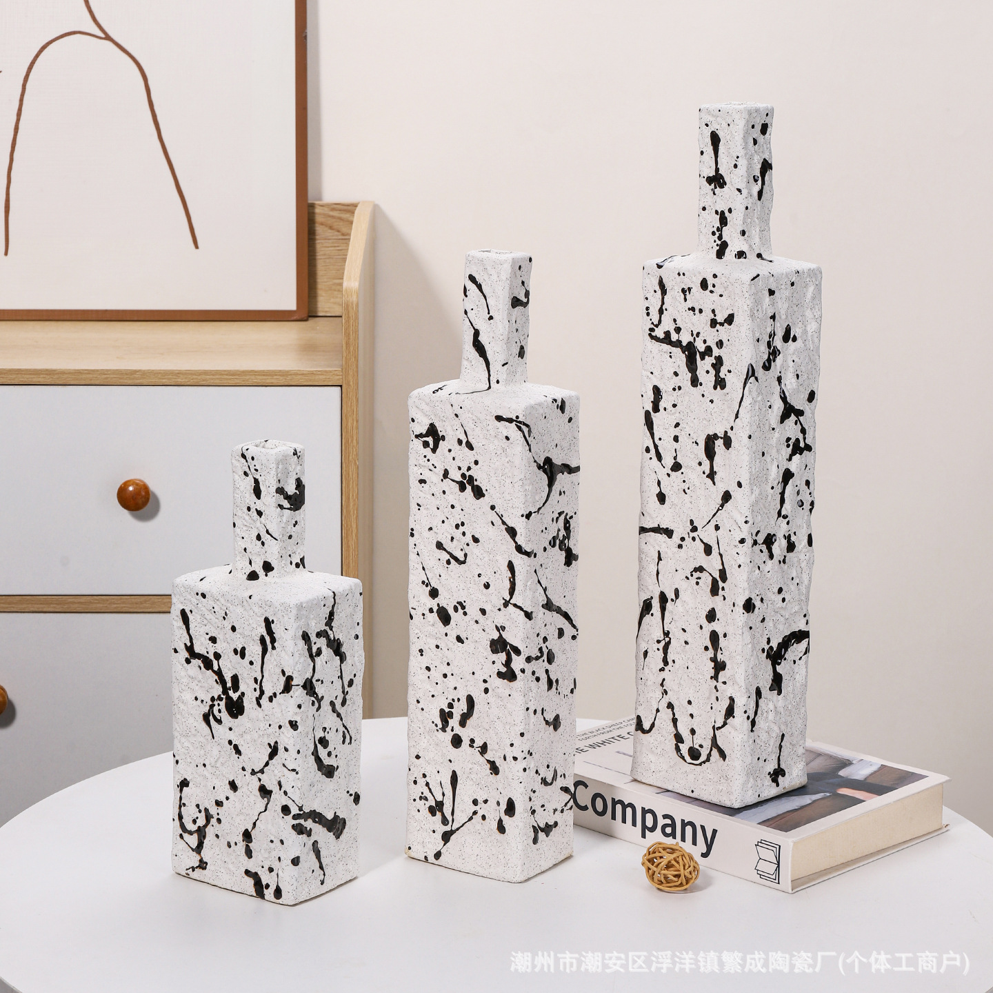 卸売りの簡単な陶磁器の花瓶の5つのセットの家庭の工芸品の小さい花器の簡単な玄関のテレビの棚のデスクトップの置物