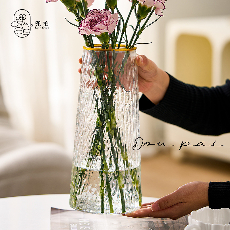 Ins風水晶ガラス花瓶透明生け花置物軽量高級客間高級感ネット赤水培花