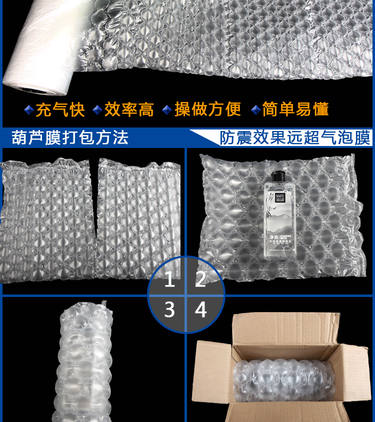 ヒョウタン膜気泡膜クッション充填袋空気袋空気入れ枕防振転倒防止