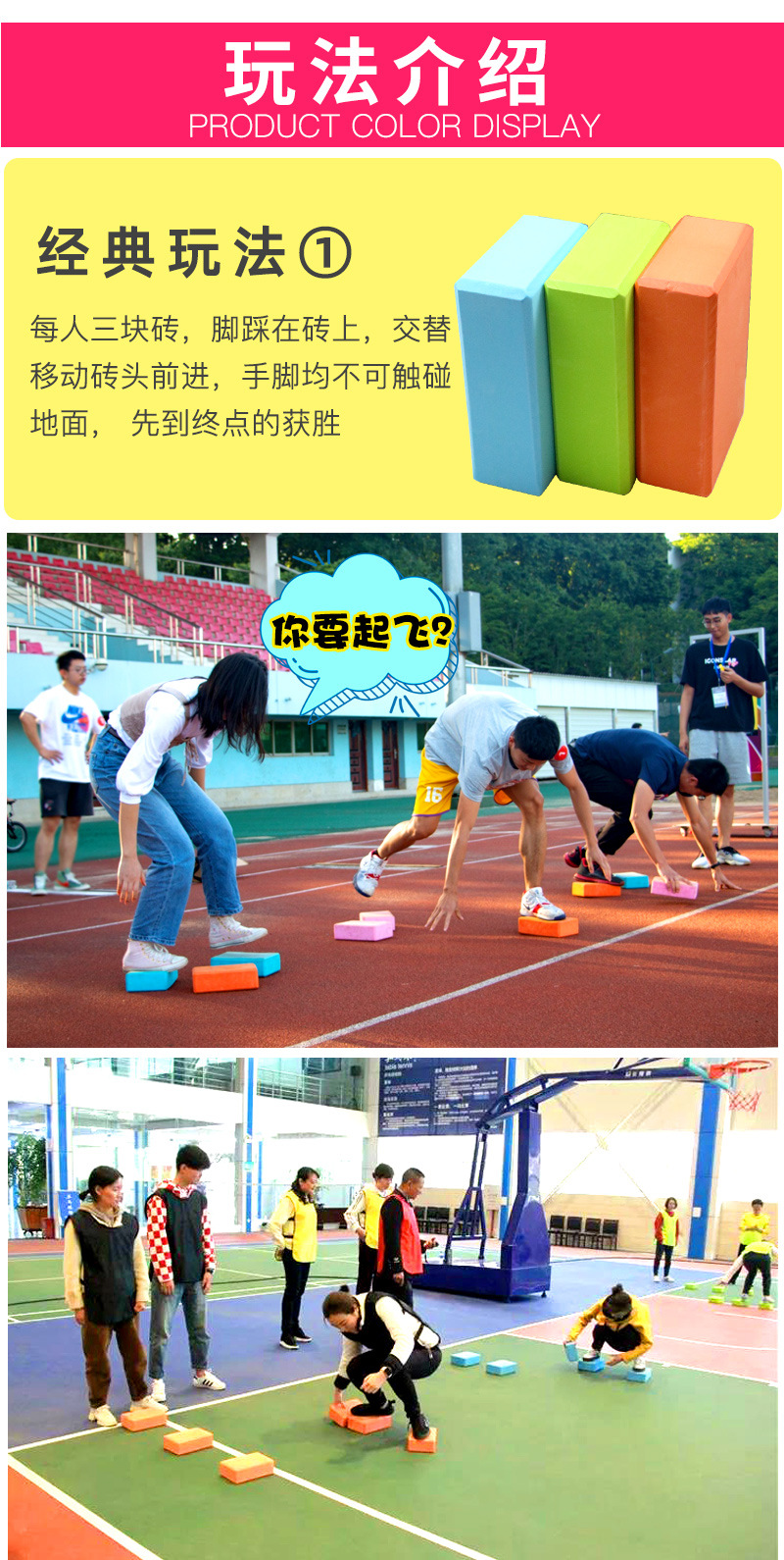 石を触って川を渡るレンガ趣味運動会ゲーム道具団建開拓年会三枚レンガ移動野外活動