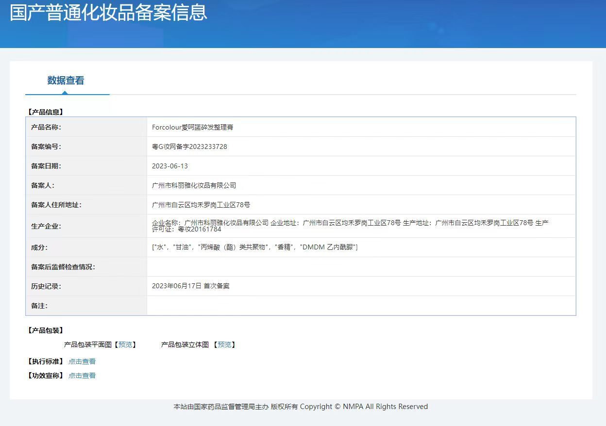 非特定化粧品届出証番号 広東Gメイクアップネットワーク準備番号 2023233728
