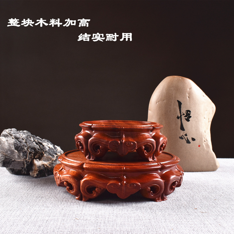 実木彫刻台座整材赤木円形木台座中国式ティーポット台座香赤木台座実木托