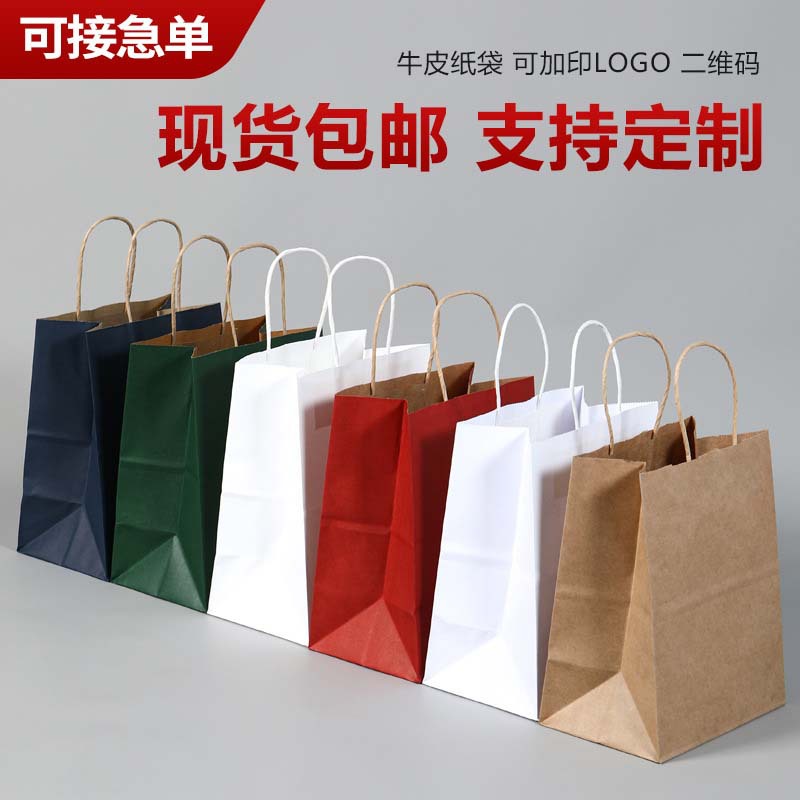 紙袋カスタム印刷ロゴクラフト紙手提げ袋現物服装ショッピング袋飲食販売包装袋カスタム