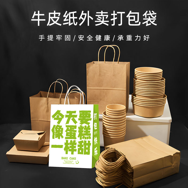 手提げ紙袋現物出前手提げ紙袋梱包クラフト紙袋ミルクティー焙煎包装袋はロゴを印刷できる