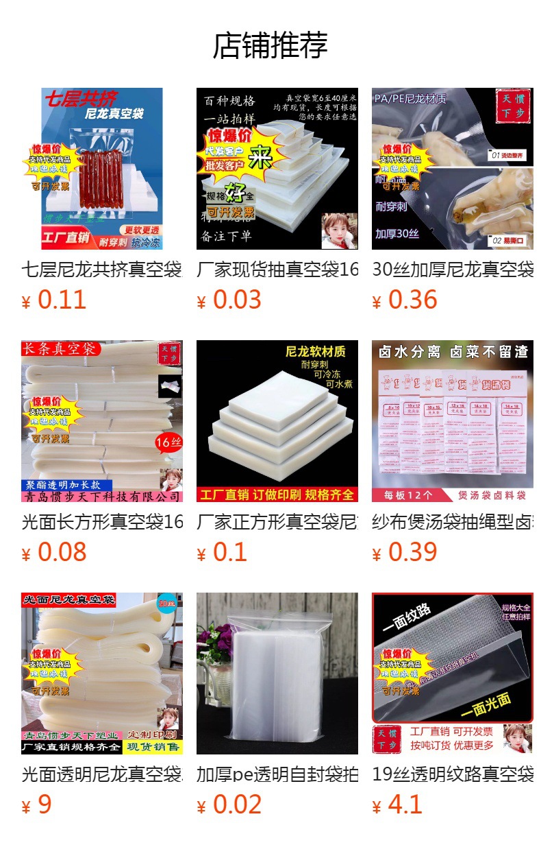 幅8*30cm16糸光沢面真空袋カジュアルスナックナッツビニール袋透明鴨首包装定袋製