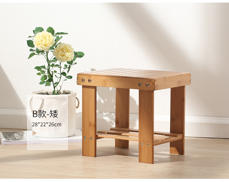 小さな木製のベンチ、素朴なデザインの竹製の椅子、子供用靴交換用ベンチ、正方形のベンチ、フットスツール、洗濯用ベンチ、大人用竹製の椅子