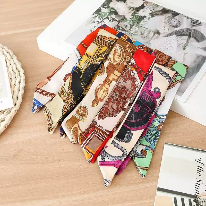 新款细窄长条飘带丝巾批发 绑包包服装配饰百搭印花伴手礼丝巾