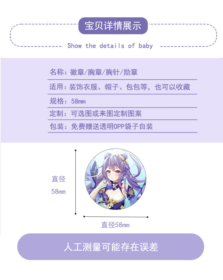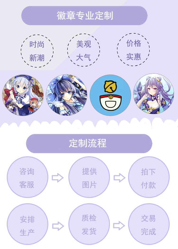 3、本店徽章产品为裸装,赠送的OPP独立包装袋,请您收到后自己装一下。有时袋子难免会少几个,少了是不补发的,只能下次订货再补上,请谅解。