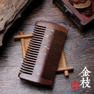 | 天然原木金丝檀木梳大号加厚防静电双面雕花檀木梳子刻字LOGO | |