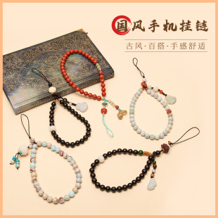 | 手机挂绳挂脖黑檀女款壳绳子个性水晶挂件手机链碧玉吊腕带防丢绳 | |